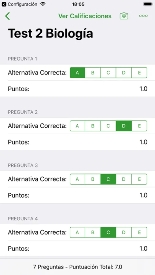 La hoja de respuesta de cada estudiante viene incorporada en la aplicación, la que permite corregir pruebas de alternativas y verdadero y falso.
