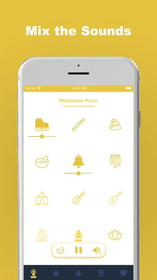 - Meditation sounds (white noise, piano, oriental flute)