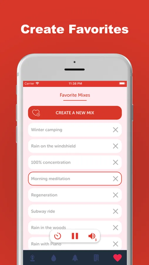 Nature Sounds brings great collection of HD sounds that can be mixed into the perfect relaxing ambiences. You can choose from different types of rain, nature sounds, city sounds, white noise or instruments. Save your favorite sound mixes so they are always by hand with you.