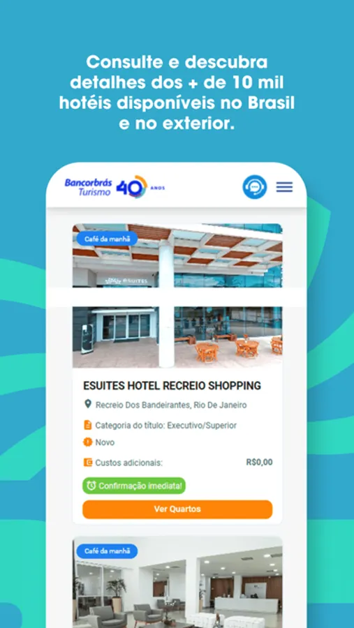 Baixe agora e confira os detalhes dos mais de 10.000 hotéis conveniados no Brasil e no exterior.