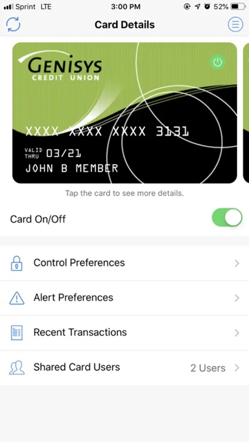 • Stop fraudulent activity before it even happens with the alert feature. Based on your preferences, Genisys Card Controls can send you a real-time alert when your card is used outside of your chosen preferences, giving you the power to deny the transaction or turn your card off. Alert preferences can be set by: