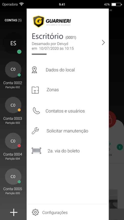 A Guarnieri Soluções em Segurança é um aplicativo móvel onde o cliente monitorado pode acompanhar diretamente via celular ou tablet todas as atividades do seu sistema de segurança. Por meio do aplicativo é possível saber o status do painel de alarme, armá-lo e desarmá-lo, visualizar as câmeras ao vivo, verificar eventos e ordens de serviço abertas e realizar chamadas telefônicas para contatos cadastrados no seu perfil. É a segurança que você precisa na palma da sua mão.