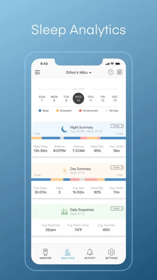 Miku is the baby monitor that tracks breathing, sleep patterns and nursery conditions without wires or wearables. Miku’s proprietary SensorFusion technology works with your smartphone in real time to alert you when it matters most.