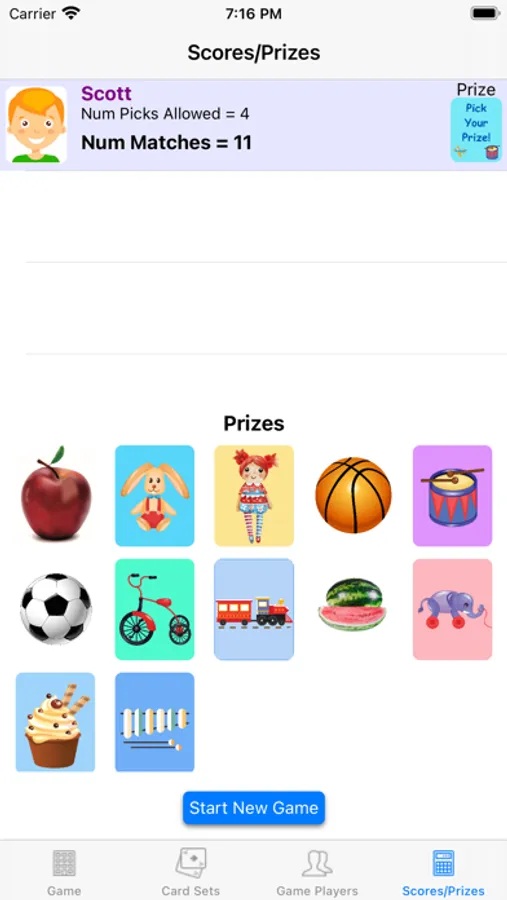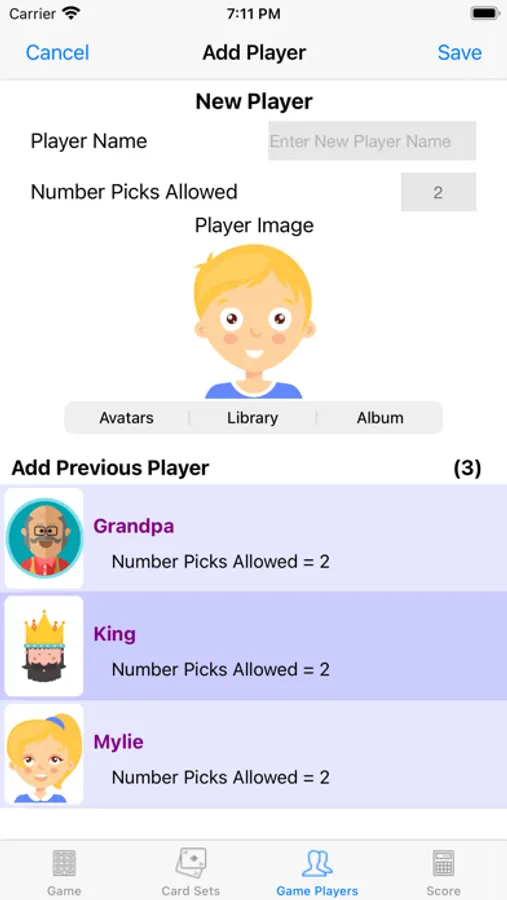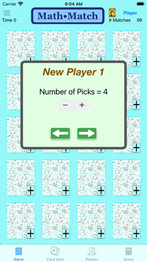 * The number of cards and the number of picks each player gets can be changed, to adjust the difficulty level for each player.