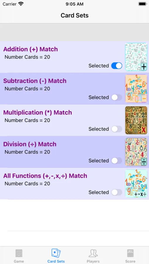* Game can be played for addition, subtraction, multiplication, or division separately, or a combination of all functions.