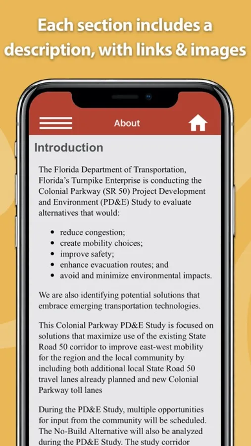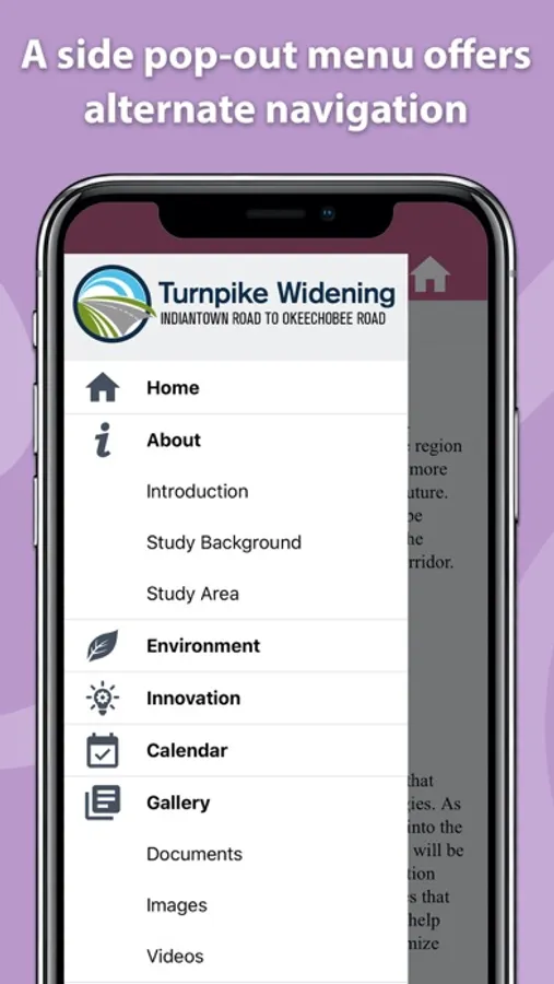The Florida’s Turnpike Projects app provides a summary of the current major projects being developed by Florida’s Turnpike Enterprise. Each project summary will include: