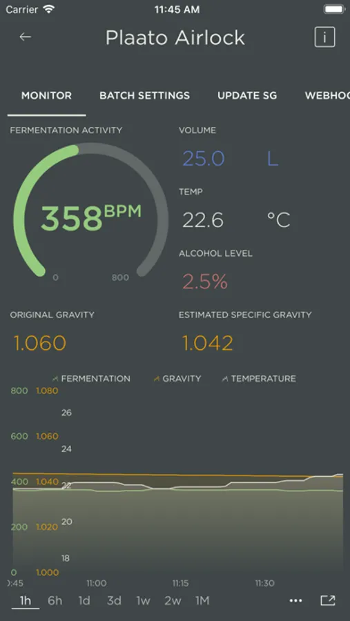 Since the fermentation process generates equal amount of CO2 and ethanol, Plaato can use this data to estimate the Specific Gravity (SG), alcohol percentage and quantify the fermentation activity.