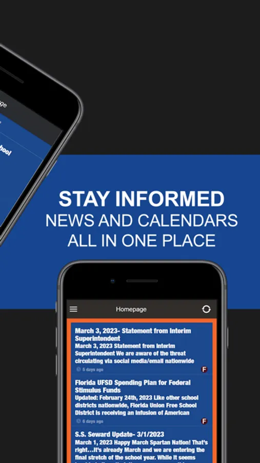 With the Florida UFSD mobile app, your school district comes alive with the touch of a button. Easily navigate through current news and events or check out the latest updates with social media. Quickly retrieve contact information, sporting scores, lunch menus, and more! It’s your school district available at your fingertips.