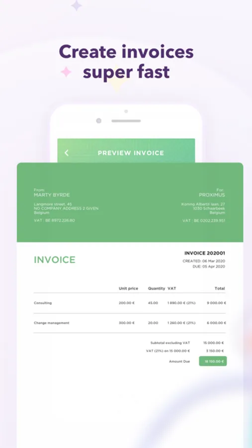 - Create, personalise, and send invoices for your clients on your phone or on your computer. We notify you as soon as you get paid.