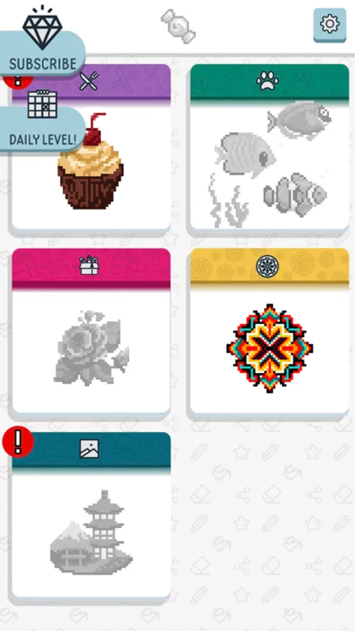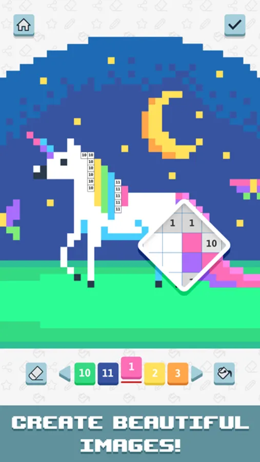 -ENJOY many thematic level packs that will have you hooked as you color and discover incredible pixel art images! From a whimsical unicorn to an exotic landscape, there’s nothing your artistic talents can’t paint!