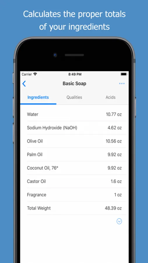 A modern soap calculator to help you formulate traditional handmade soap recipes. Craft your own mix of oils and lye for that perfect bar of soap.