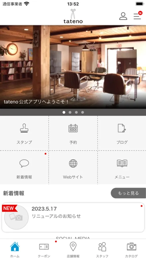 アプリを通して「tateno」の新着情報やお得な情報をリアルタイムで受けてることができます。