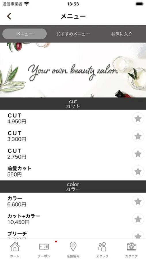 気になるサロンメニューや価格をアプリから簡単にご確認いただけます。
