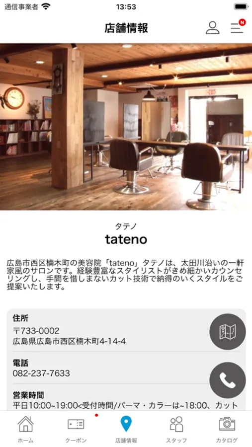 店舗のマップが表示され、地図アプリとも連携しているので、初めてのご来店の時も簡単に見つけることができます。