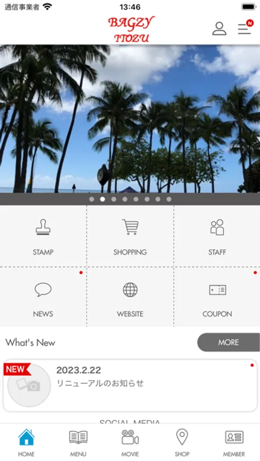 アプリを通して『BAGZY到津』の最新情報やお得な情報をリアルタイムで受け取る事ができます。