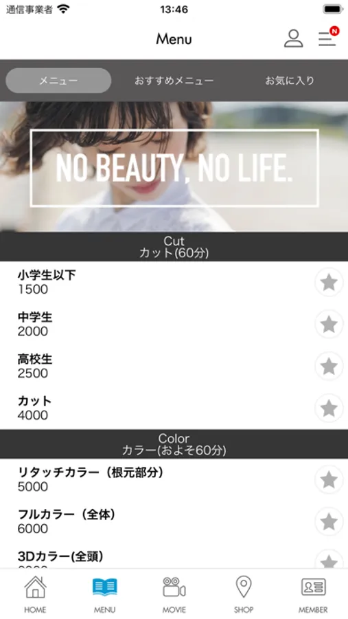 気になるサロンメニューや価格をアプリから簡単にご確いただけます。