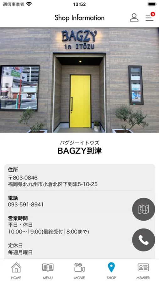 店舗のマップが表示され、地図アプリと連携しているので、初めてのご来店の時も簡単に見つけることができます。