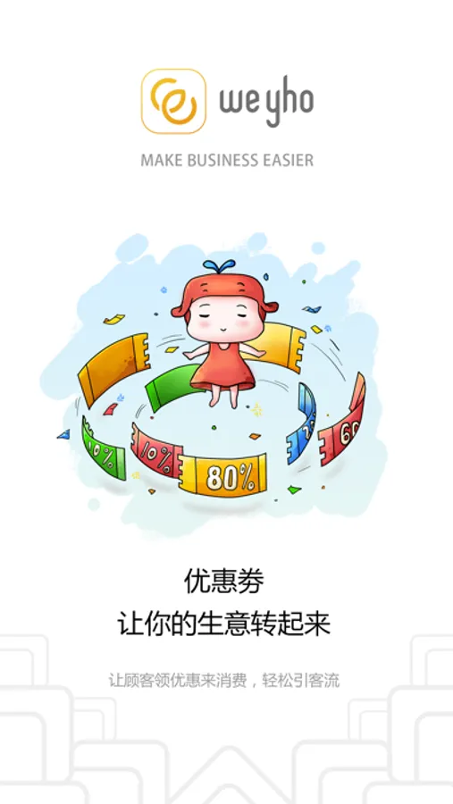 各位商家在WeYho中注册开通店铺,或者使用YhoFoodie商家账号直接登录;即可在YhoFoodie餐饮平台中发行店铺优惠券和店铺VIP会员卡,进行店铺营销推广。