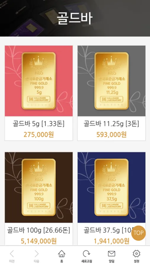 각인 된 제품만 공급되고 있습니다. 한국표준금거래소는 스마트폰으로 언제 어디서든 귀금속 정보를