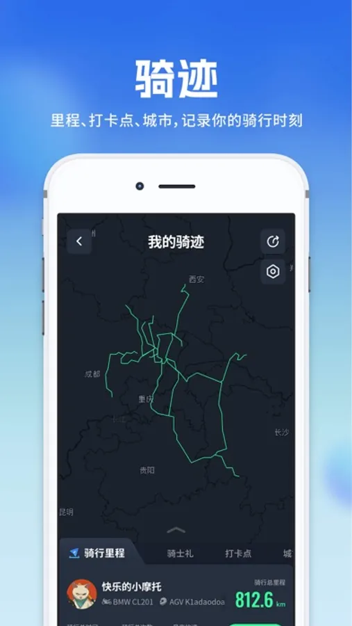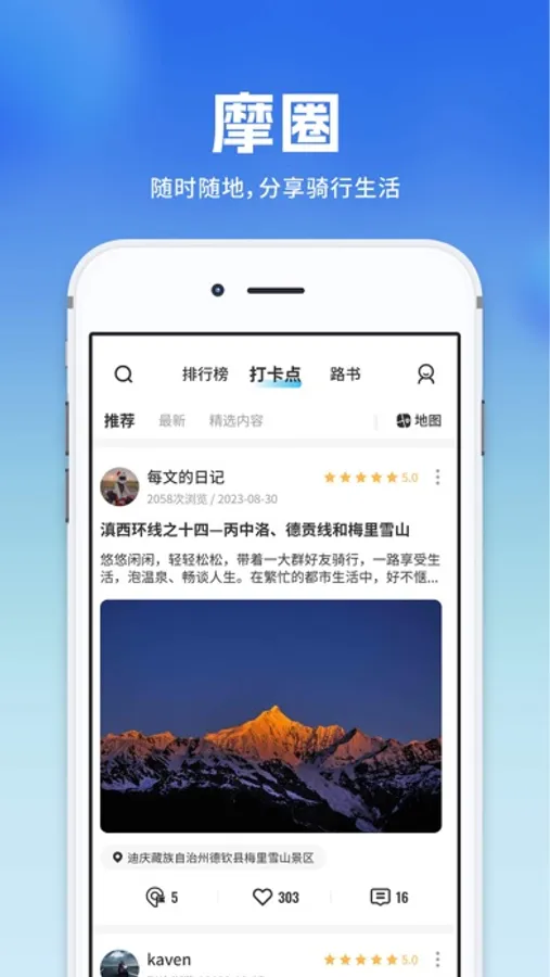 8. 摩旅之路,记录和分享一路风景、骑行路书和美好心情,为摩友提供出行目的地参考数据。