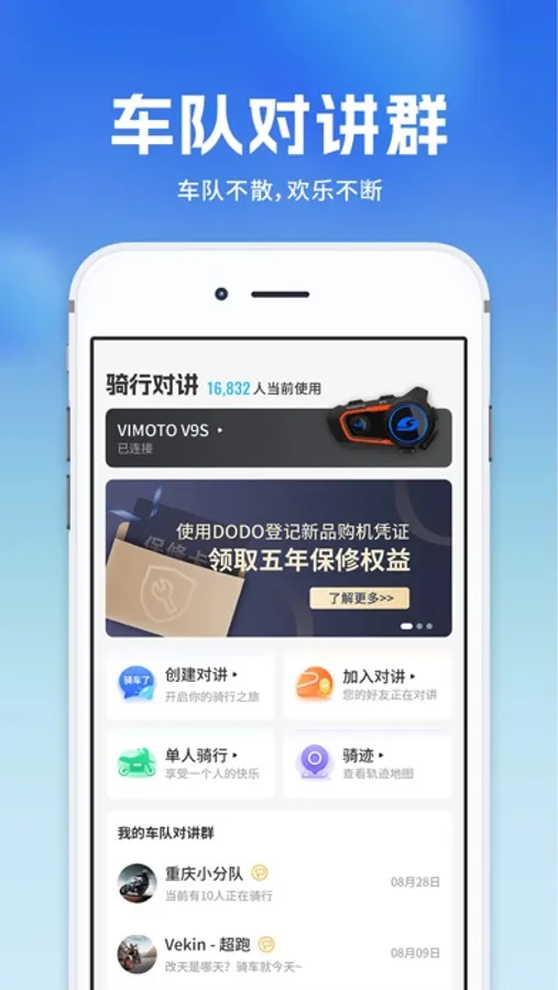 维迈通多多是一款专业的摩托车骑行对讲、轨迹和路书软件,通过蓝牙无线连接维迈通硬件设备,实现车队骑行和个人骑行的对讲、音乐的功能。围绕车友的安全骑行、通讯自由和快速响应为根本,提供摩托车骑行中的全地形无盲点和多模式通讯管理服务。维迈通多多具有多种网络语音对讲模式、蓝牙设备连接和管理、支持遥控器快速切换网络对讲和音乐模,满足摩托车骑行中不同场景和人群的通讯需求。