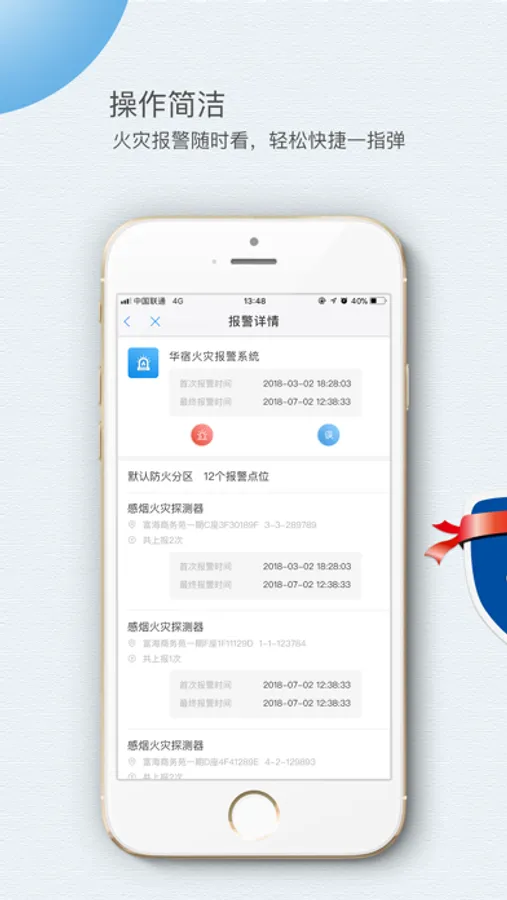 功能强大的华宿云APP轻松实现了对消防安全隐患的交互式控制、远程报警、维护管理、安全数据分析、远程断电等多项消防安全应用管理,让您随手掌控消防安全!