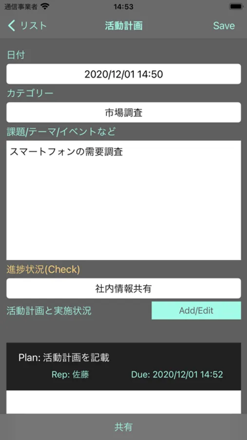 このアプリは、PDCAを効率的に、見える化し、情報共有を目的としました。