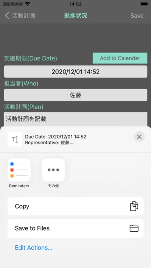 さらに、Action Planについても、その状況をメールなり、メッセンジャーなり、AirDropなりで情報共有が簡単に実現できます。