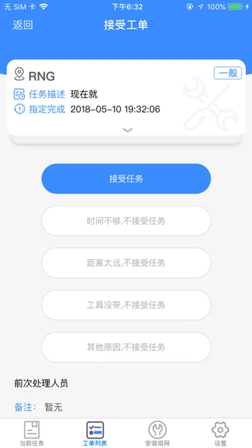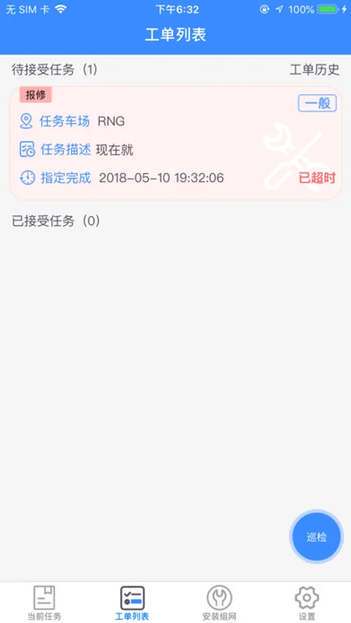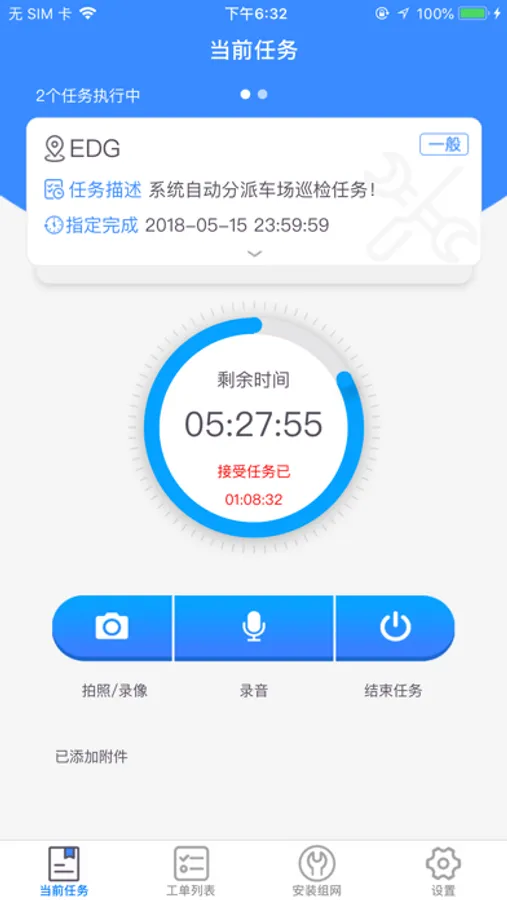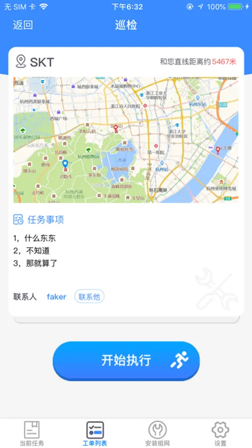 立方创建的服务平台,主要用于技术人员接收任务、完成任务,任务包括定时巡检、派工单和安装单三种。因特殊要求,用到持续定位服务,用来维保服务,方便管理,工作高效可能会衰减电池寿命。