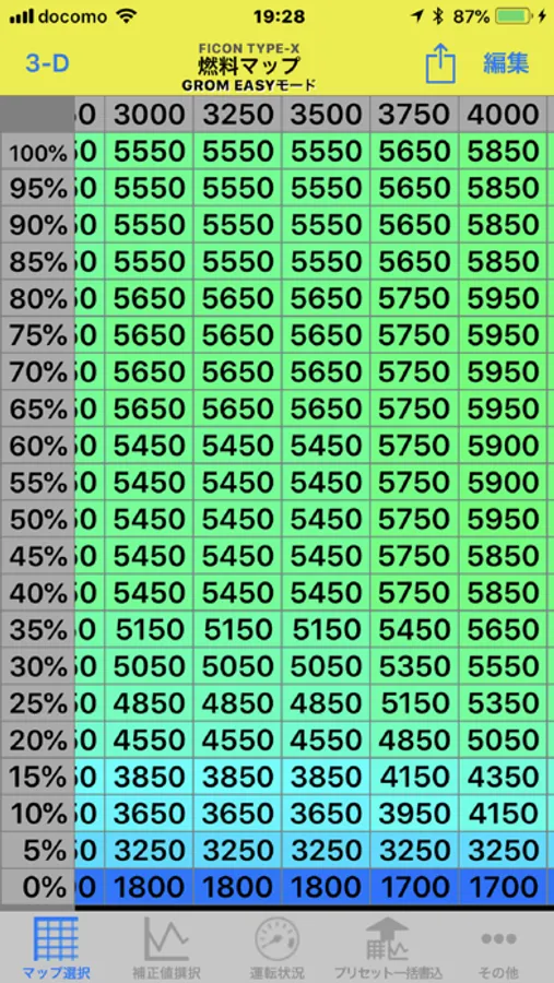 - Display the current engine speed and throttle position in real time in the fuel map.