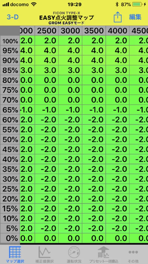 - + 20 / - 20 degree spark advance / delay angle can be adjusted for each engine rotation / throttle position. It is also possible to adjust the dwell time.