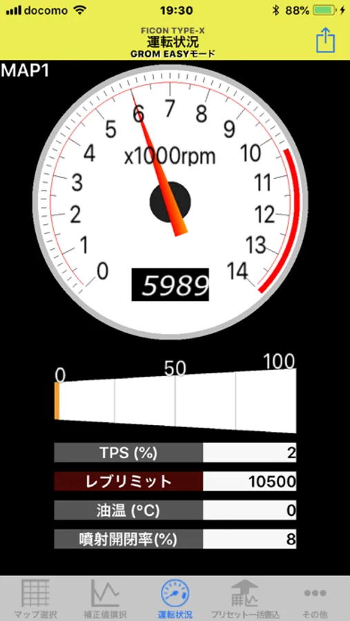 This application can be downloaded for free. When it is free, you can connect with all FI - CON TYPE - X, but only the tachometer screen is displayed. (Only tachometer and TPS are displayed).
