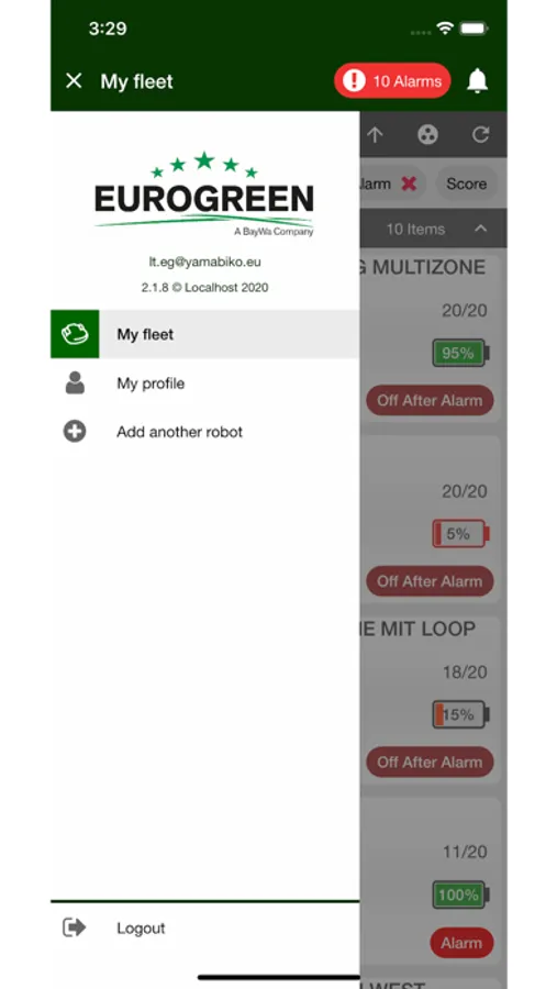 The Belrobotics app gives you control to your robot, wherever you are. Check live status, battery level and performance of the last five days. Get easy overview of activities, parameters and schedule. Send any commands and get instant confirmation. Check robot GPS Location with associated alarms position. Search, sort, filter and group to compare robots.