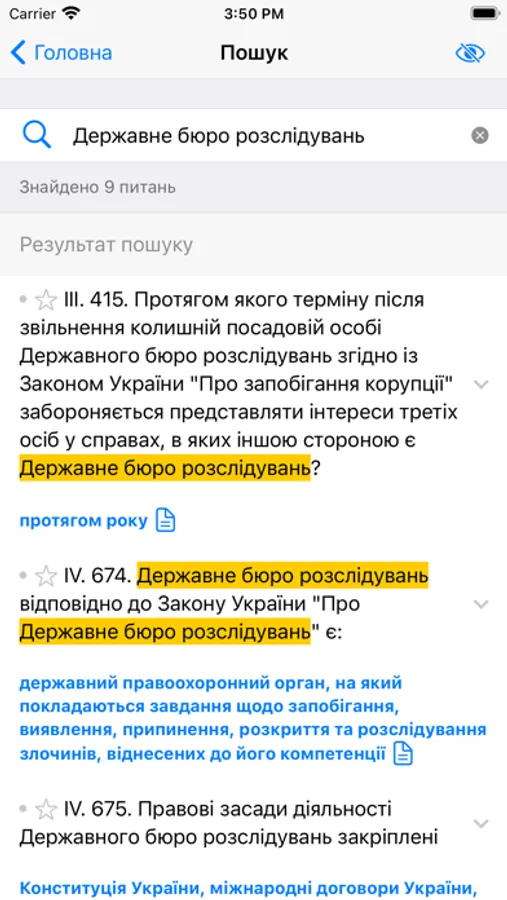 IV. Закон України "Про Державне бюро розслідувань" - 102 питань (674-775);