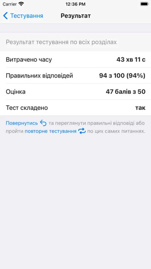- Зручний пошук та перегляд відповідей без проходження тестування;