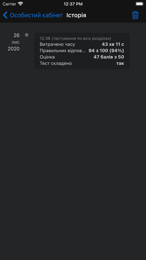Запропонований навчальний додаток містить перелік тестових питань з відповідями та їх варіантами, які будуть на офіційному тестуванні і завдяки реалізованому функціоналу значно полегшує та прискорює підготовку.