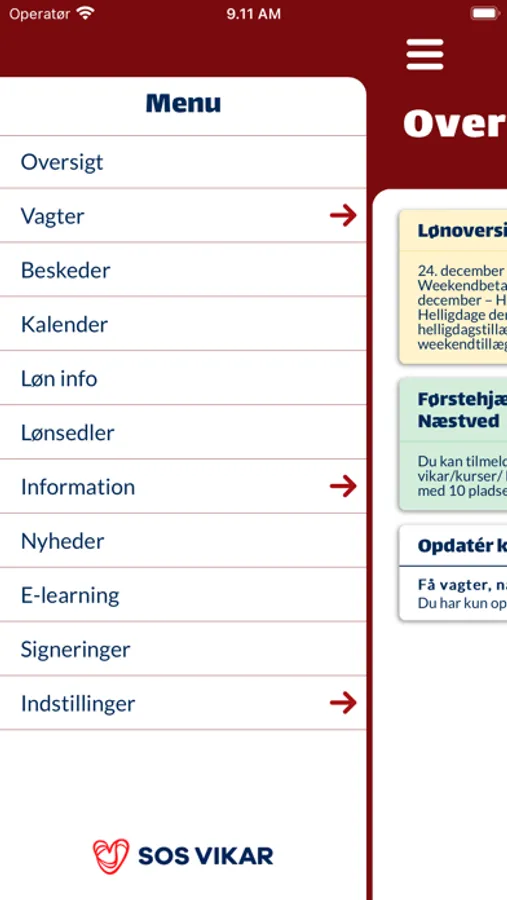 Som vikar hos SOS VIKAR får du med denne app direkte adgang til din kalender, vagtlister, lønsedler og alle de andre værktøjer, som giver dig det nødvendige overblik. Nu også når du er på farten.