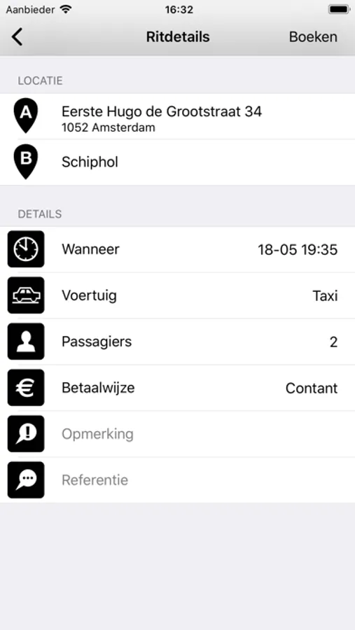 U kiest welke betaalwijze u wilt hanteren en boekt uw rit!