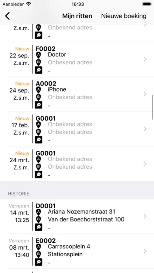 - De taxi volgen en de aankomsttijd van de chauffeur.