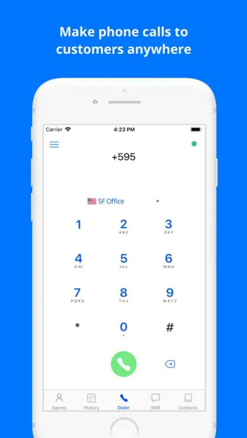 Use this calling app to make and receive calls and send SMS using Toky for Business on your device. Use Toky virtual phone system on the go and stay connected outside of the office or while you are traveling using WiFi or mobile networks. Turn your mobile device into your virtual call center and improve sales and customer service. Call customers from anywhere and receive international calls from your website, virtual phone numbers or Facebook fan page.