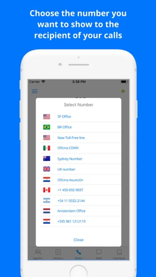 Get virtual phone numbers in more than 60 countries and answer calls from your mobile device or desktop. You can get even toll-free phone numbers.
