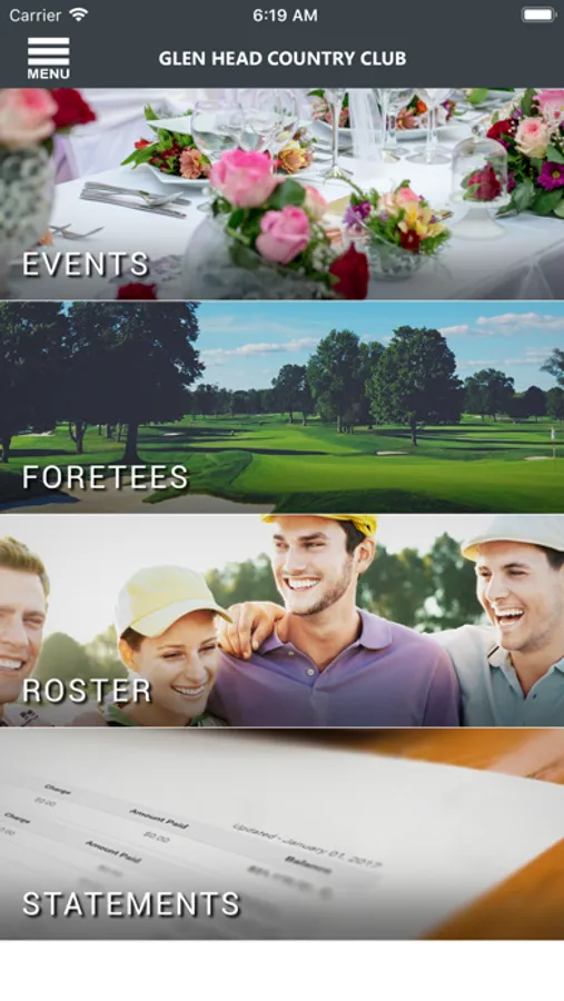 Mobile app for use by Members of Glen Head Country Club. GHCC Members can monitor your statement, keep current on events at the Club and even book Tee Times. Use the Roster to connect with other members and receive notifications on upcoming club events, all by the way of your handheld or tablet.