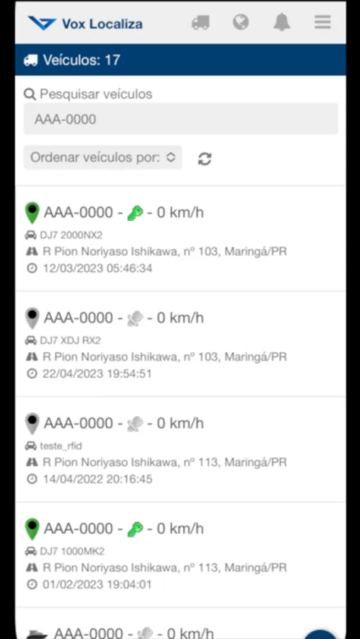 Com o Vox Localiza você pode bloquear ou desbloquear o veículo, ver histórico de posições, ver trajeto recente no mapa e muito mais!