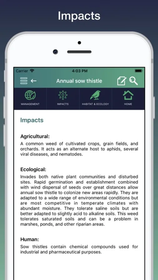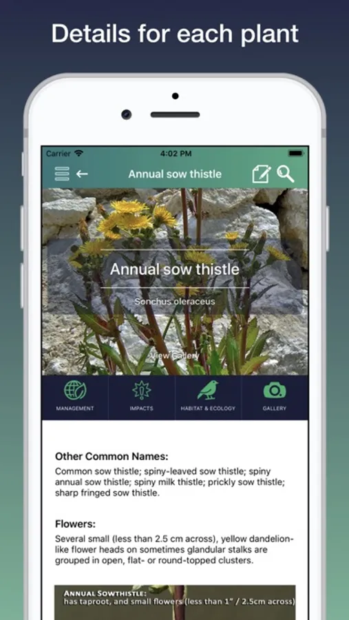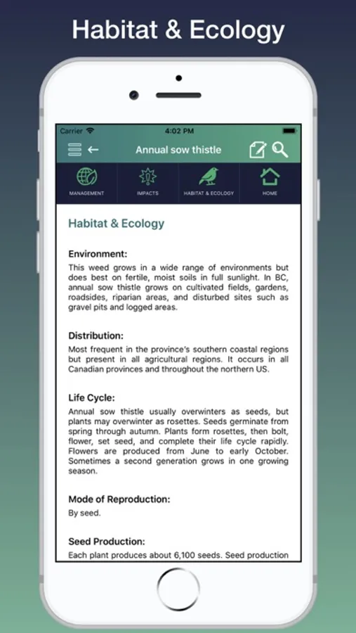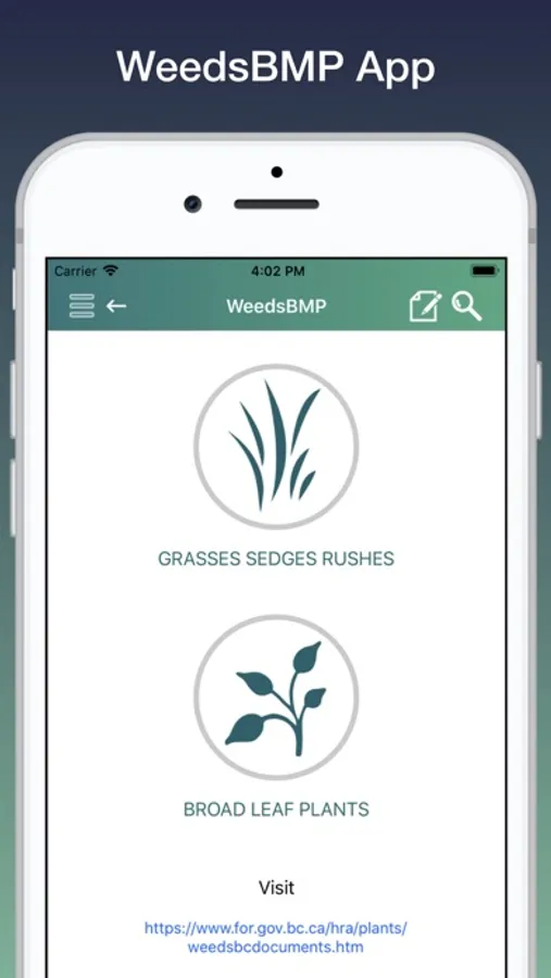 The WeedsBMP app was developed as a management tool for livestock and forage producers in BC to successfully identify and manage invasive plants to minimize impacts on operations. WeedsBMP includes identification and management information for 95 invasive plants. Users can search the app by common name, scientific name, and by flower colour to correctly identify an invasive plant and learn how to manage it. The plants are divided into two groups: