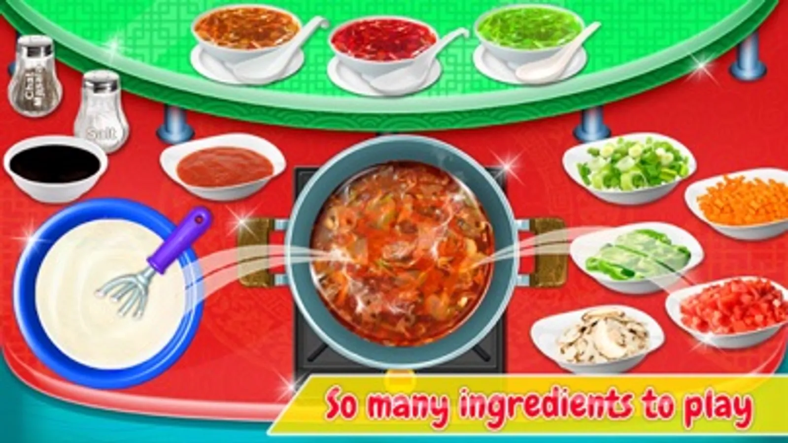 Chinese New Year 2020 is coming soon! The streets are decorated with red lanterns and New Year scrolls. This Game provides an interactive interface where the everyone can learn the process of making each recipe like Spring Roll, Noodles, Manchurian, Chinese Salad, Chow mein, Fried Rice and Soup. This includes every step of the recipe in an interactive method allowing the user to perform every tasks in order to make the food.