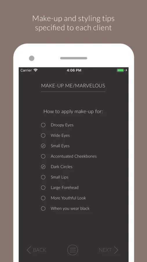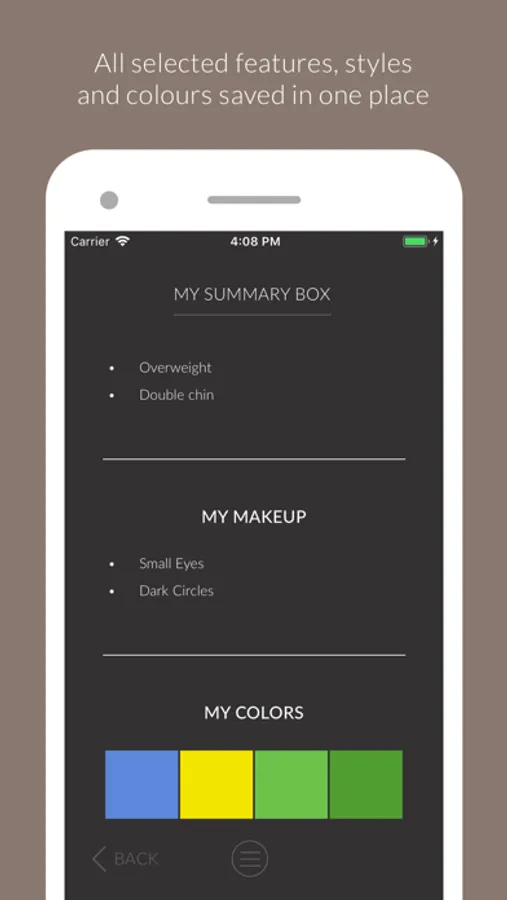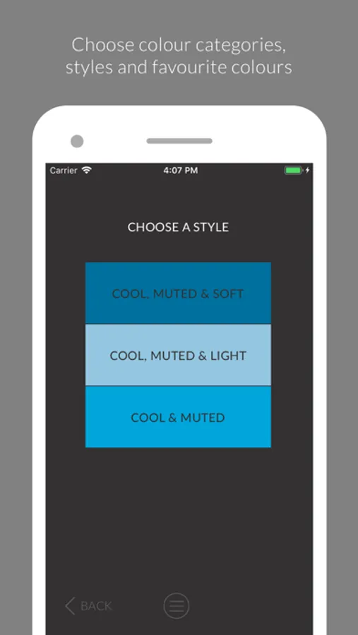 At the tap of a screen and a swipe of the finger, consultants can enter their clients’ details for a style and colour consultation in the palm of their hand. When all the measurements have been entered, and the consultant has decided on the client’s colour flow and dialled it in, the Appearance Specialist retains the information and will give multiple options under each important section, eg. Find My Figure, Find My Face, Find My Fashion, Show My Shape, Show My Segments, Create My Colour etc.