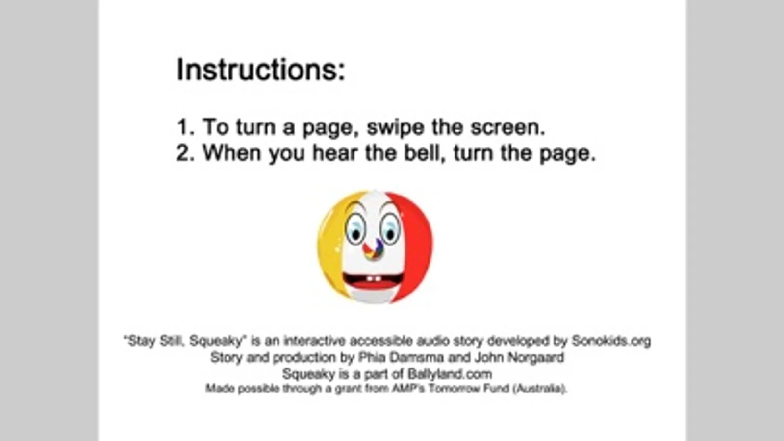 FIRST: Enjoy the adventure of Squeaky, the bouncy ball from Ballyland, who tries really hard to stay clean for a visit to his grandmother. Two simple, ‘informal’ gestures, touch and swipe, enable interaction with the story, resulting in Squeaky getting dirtier and dirtier...
