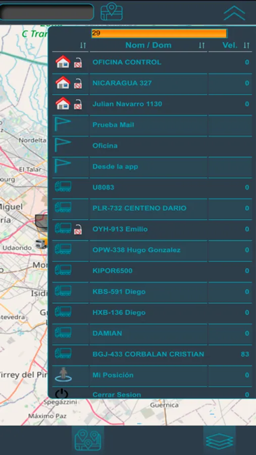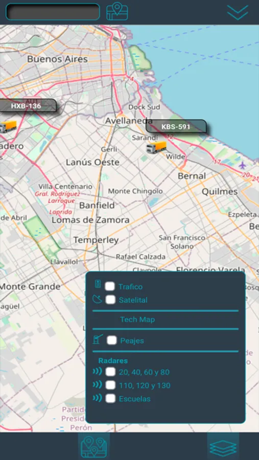 La aplicación cuenta con un mapa con referencias interactivas, todos tus vehículos al alcance de un click. Información adicional sobre la posición actual del vehiculo, estado de reporte del mismo.