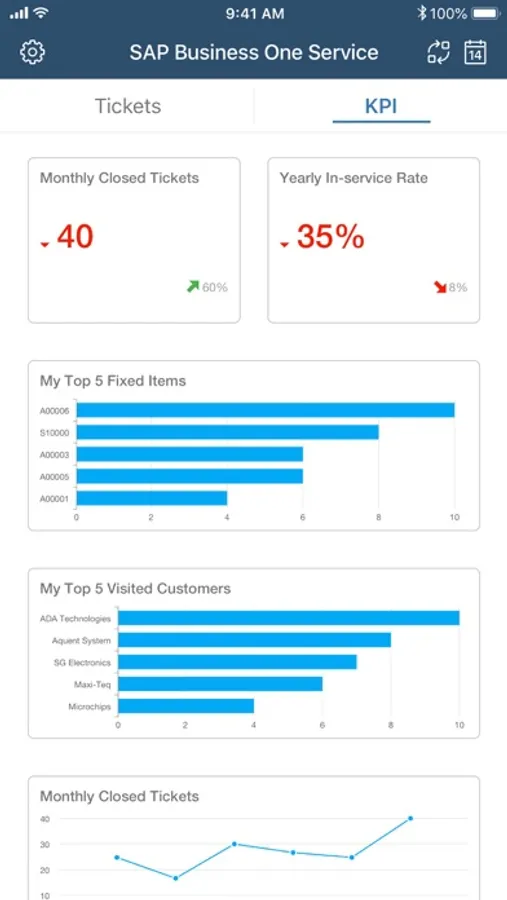 With the SAP Business One Service mobile app for iPhone, maintenance technicians can provide on-site services for their customers easily and efficiently. Connected to the SAP Business One application, this mobile app can help you increase productivity and boost customer satisfaction through the SAP Business One field service solution.