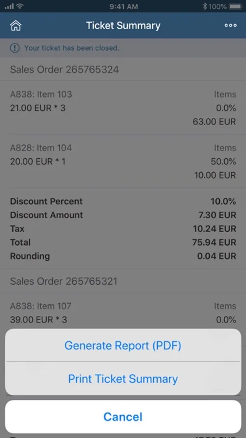 • Print service ticket summaries with a portable Bluetooth thermal printer